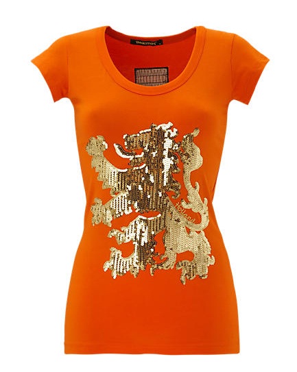 Uitstraling is voor vrouwen een belangrijke eis als ze shoppen voor oranje-artikelen. Waar de Nederlandse man massaal kiest voor het officiële Nederlands Elftal shirt, staat de Nederlandse vrouw vooral modieus achter Oranje. Het populairste oranje fashion-item voor vrouwen is een strak oranje Geisha-shirt met de Nederlandse leeuw in glitters op de voorkant. Hiervan werden er in korte tijd vele honderden bezorgd in Nederland, waardoor dit item inmiddels is uitverkocht.